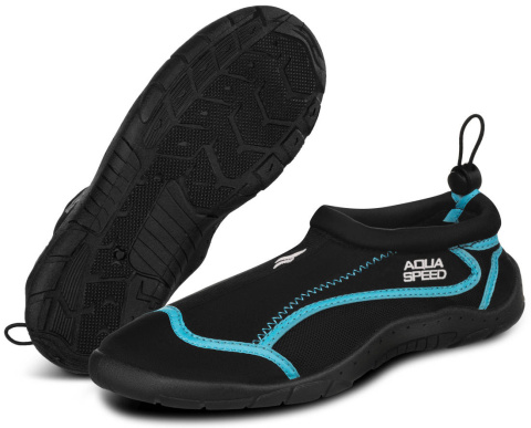 Buty do Wody Aqua-Speed 28C kol.01 niebiesko-czarne to doskonałe obuwie do sportów wodnych. Chronią stopy, są odporne na wodę i otarcia. Miękkie, elastyczne i idealnie dopasowane. Uwaga: nie zabezpieczają przed poślizgnięciem na śliskich powierzchniach.