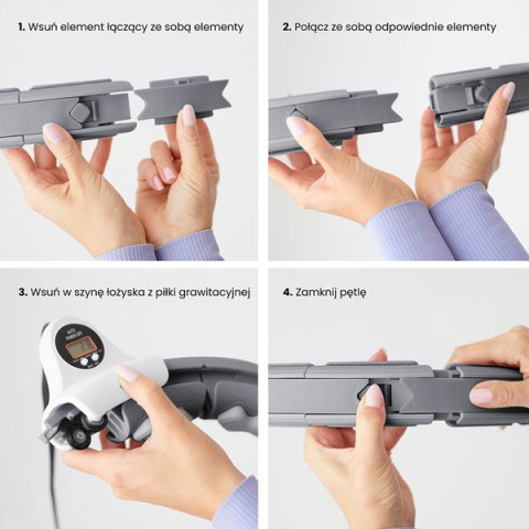 Hula-hoop HHW06 HMS z piłką grawitacyjną to idealne narzędzie do treningu i masażu talii. Regulowany obwód od 76 cm do 111,5 cm zapewnia komfort użytkowania. Wbudowany wyświetlacz LCD monitoruje czas, kalorie i obroty. Pomaga w wzmocnieniu mięśni oraz redukcji cellulitu.