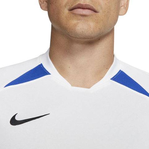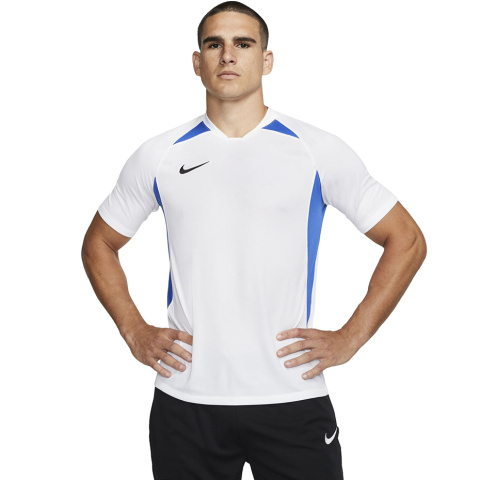 Koszulka męska Nike Dry Legend Jersey w kolorze biało-niebieskim to idealny wybór dla każdego piłkarza, który ceni sobie wygodę i komfort podczas gry na boisku.