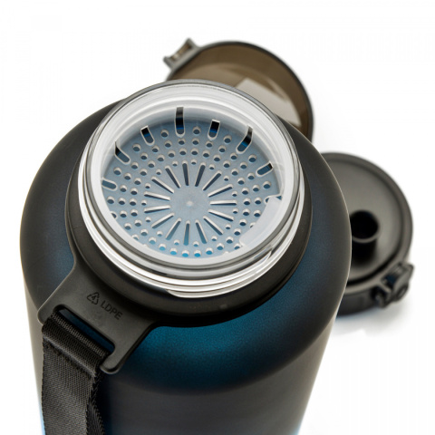 Praktyczny bidon marki Meteor, który możesz zabrać ze sobą na trening, siłownię, do szkoły czy wycieczkę rowerową (można pić używając tylko jednej ręki). Butelka jest przezroczysta z matowym wykończeniem i powierzchnią antypoślizgową. Zapewnia płynny, łagodny i równy przepływ wody, bez ściskania butelki i ssania. Wyposażona jest w miarkę oraz sitko do oddzielenia np. owoców lub kostek lodu. Kolorystyka butelki dodatkowo zachęca do nawodnienia organizmu. Ma odpowiedni rozmiar dla większości uchwytów samochodowych i rowerowych. Posiada ona wygodny w noszeniu, pasek na rękę. Uszczelniona jest zamknięciem z blokadą, ale przy tym łatwo i szybko otwiera się za pomocą jednego dotknięcia. Dzięki specjalnej blokadzie wieczka, nie musisz się niepokoić przypadkowo wylanym napojem. Wieczko, dodatkowo zabezpiecza ustnik przez zanieczyszczeniem. Butelka jest lekka i odporna na uderzenia.