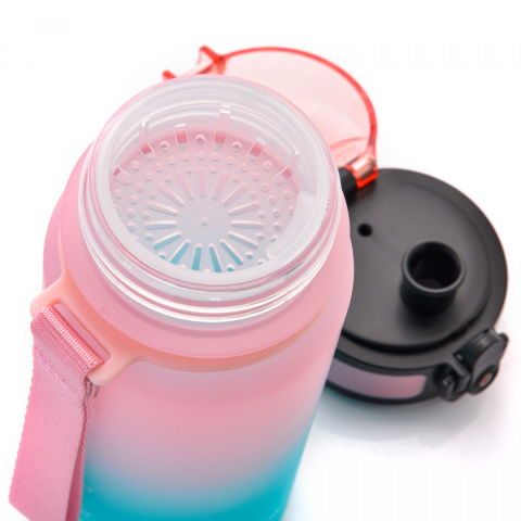 Praktyczny bidon marki Meteor, który możesz zabrać ze sobą na trening, siłownię, do szkoły czy wycieczkę rowerową (można pić używając tylko jednej ręki). Butelka jest przezroczysta z matowym wykończeniem i powierzchnią antypoślizgową. Zapewnia płynny, łagodny i równy przepływ wody, bez ściskania butelki i ssania. Wyposażona jest w miarkę oraz sitko do oddzielenia np. owoców lub kostek lodu. Kolorystyka butelki dodatkowo zachęca do nawodnienia organizmu. Ma odpowiedni rozmiar dla większości uchwytów samochodowych i rowerowych. Posiada ona wygodny w noszeniu, pasek na rękę. Uszczelniona jest zamknięciem z blokadą, ale przy tym łatwo i szybko otwiera się za pomocą jednego dotknięcia. Dzięki specjalnej blokadzie wieczka, nie musisz się niepokoić przypadkowo wylanym napojem. Wieczko, dodatkowo zabezpiecza ustnik przez zanieczyszczeniem. Butelka jest lekka i odporna na uderzenia.