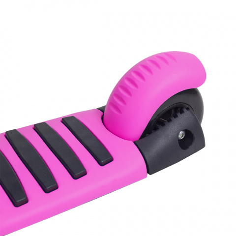 Kierownica i siodełko posiadają płynny system regulacji. Szeroki, stabilny podest oraz hamulec tylny zapewniają bezpieczeństwo podczas jazdy.