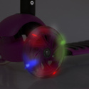 Przednie koła są skrętne i mają wbudowane diody LED, które sprawią, że dziecko jest lepiej widoczne podczas jazdy.