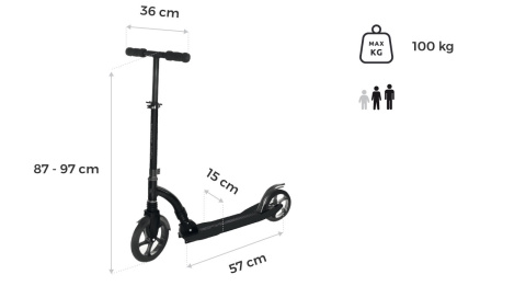 Hulajnoga Spokey AGENT jest idealnym wyborem dla miłośników szybkiej i komfortowej jazdy, zarówno dla młodszych użytkowników, jak i dorosłych. Jej główną zaletą są duże koła – przednie o średnicy 230 mm oraz tylne 180 mm, które nie tylko zwiększają prędkość poruszania się, ale również zapewniają znakomitą skrętność i elastyczność podczas manewrowania. Takie wymiary kół gwarantują większą płynność jazdy oraz lepszą przyczepność, dzięki czemu hulajnoga świetnie radzi sobie na zakrętach oraz nierównych nawierzchniach.