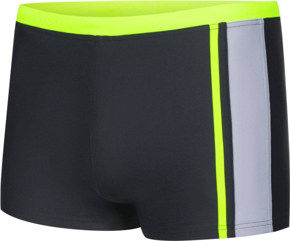 Max to spodenki pływackie wykonane z dzianiny Malaga o podwyższonej odporności na chlor z kontrastowymi, bocznymi wstawkami i doszywanym, kolorowym pasem. Te dziecięco-młodzieżowe spodenki, dzięki podszewce na przodzie i wewnętrznemu sznurkowi, świetnie przylegają i zapewniają wygodę podczas pływania. Ze względu na ciekawą kolorystykę i komfort użytkowania strój ten na pewno przypadnie do gustu młodym miłośnikom wody. Spodenki Max to doskonały wybór zarówno na basen, jak i na plażę.
