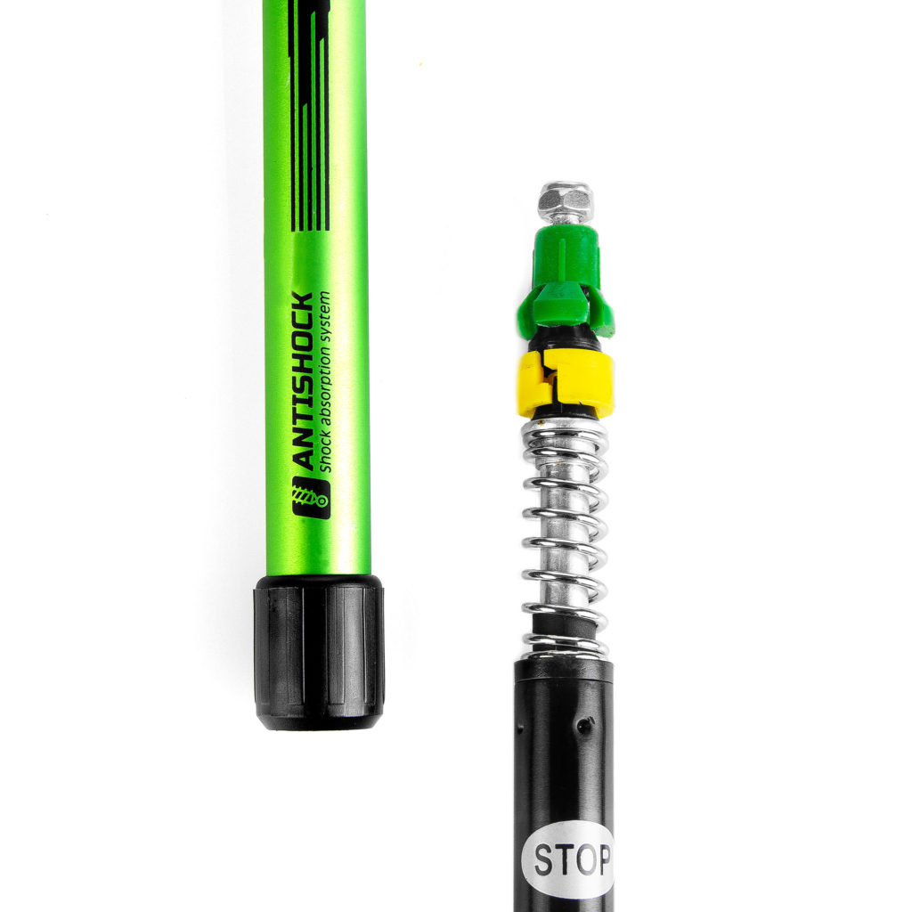 Kije Spokey Ekvilibro oferują regulowaną długość od 105 do 135 cm, umożliwiając idealne dopasowanie do wzrostu użytkownika. Złożone mierzą tylko 65 cm, co ułatwia ich transport i przechowywanie – można je łatwo przymocować do plecaka. Główną zaletą kijów Ekvilibro jest zastosowany w nich system Anti-Shock, który amortyzuje wstrząsy podczas szybkiego marszu, znacząco zwiększając komfort użytkowania.