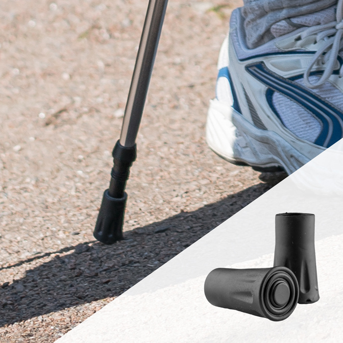 - Ochrona grotów: Końcówki skutecznie chronią groty kijów, zwiększając ich trwałość podczas marszu po twardym podłożu (beton, asfalt, kamienieste podłoże).