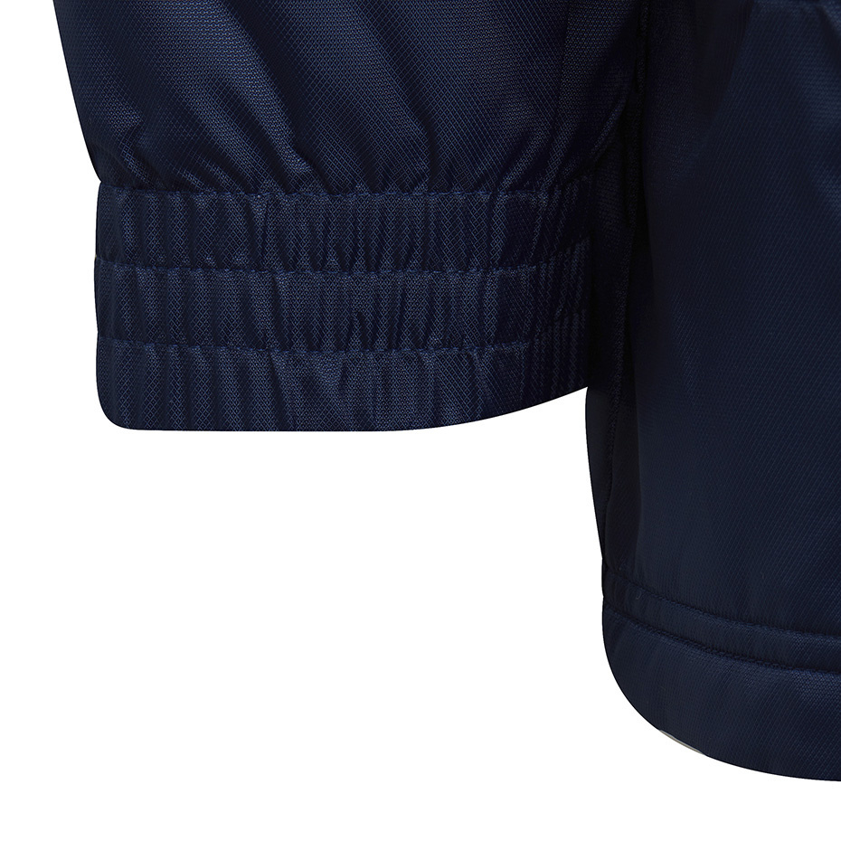 Kurtka dla dzieci adidas pozwoli Twojemu podopiecznemu prezentować piłkarski styl w każdej sytuacji. Lekki, poliestrowy materiał oferuje kompleksową ochronę w trudnych warunkach, co szczególnie Twoje dziecko doceni podczas aktywności na świeżym powietrzu. Jednokolorowy, granatowy koncept oferuje wszechstronne możliwości tworzenia sportowych zestawień, a subtelne logo eksponuje wysoką jakość na jaką stawia producent. Standardowy krój swobodnie układa się na sylwetce nie krępując naturalnego zakresu ruchów. Zamek na całej długości ułatwi ubieranie, a dodatkowa klapa przeciwsztormowa na zatrzaski tworzy skuteczną barierę od wiatru. Niezbędne drobiazgi można bezpiecznie przechować w zapinanych kieszeniach bocznych, które dodatkowo zyskały dopracowaną listwę kryjącą. Elastyczne gumki przy mankietach zapobiegają podwiewaniu chłodnego powietrza i stabilizują rękawy na właściwym miejscu. Nieodpinany kaptur jest praktycznym dopełnieniem, które sprawdzi się podczas niesprzyjającej pogody i lekkiej mżawki. Kurtka adidas tworzy dodatkową barierę od zimna, dlatego to nieoceniony model wpasowujący się w potrzeby każdego młodego sporowca.