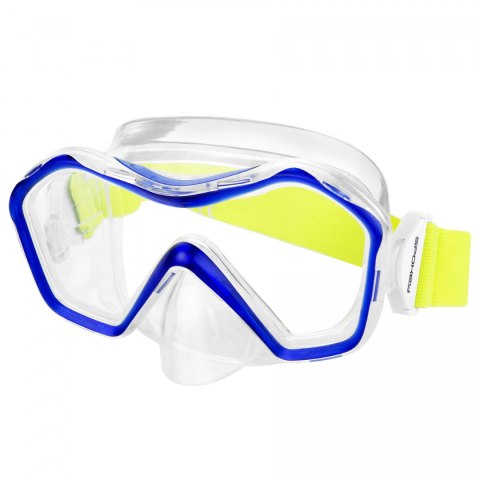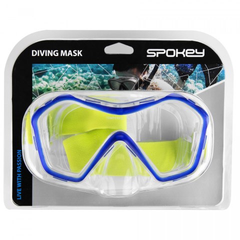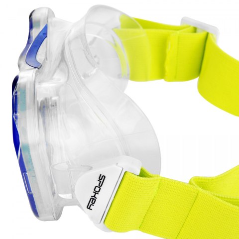 Maska do nurkowania Spokey Perch BL/YW z elastycznym paskiem posiadającym uchwyt na fajkę