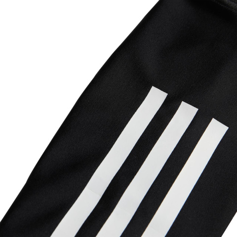 Ochraniacze posiadają kompresyjne rękawy tekstylne, które utrzymują je na właściwym miejscu, nawet podczas dynamicznych ruchów na boisku. Połączenie klasycznego czarnego koloru z trzema paskami dodaje stylu i pasuje do większości strojów treningowych.