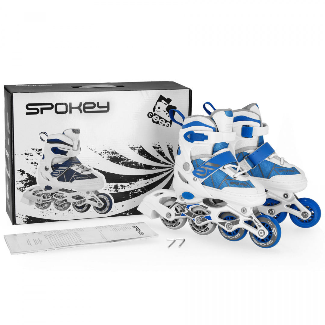 Jak zmotywować dziecko do sportu? Najlepszym sposobem są rolki! Spokey TONY łączą w sobie bezpieczeństwo i najlepsze cechy ze świata skatingu, dzięki czemu będziesz spokojnie obserwować, jak Twoje dziecko rozkochuje się w aktywności na świeżym powietrzu.Jeśli zastanawiasz się, jak nauczyć dziecko jazdy na rolkach, rozpocznij od zakupu rolek regulowanych stworzonych do tego celu. Dla najmłodszych, którzy stawiają swoje pierwsze kroki, najważniejszy jest wybór modelu, który będzie bardzo praktyczny, doskonale dopasowany do rozmiaru stóp oraz przede wszystkim łatwy w użytkowaniu. Rolki Spokey TONY łączą te cechy! Optymalne dopasowanie do stopy to podstawa, dlatego oprócz możliwości regulacji rozmiaru model TONY został wyposażony w potrójny system zapinania: sznurówki, rzep oraz klamry dwusekcyjne. Dzięki temu masz pewność, że buty będą dokładnie przylegać i tym samym, nie będą zsuwać się ze stóp dziecka, ani zmieniać swojego położenia! Zwieńczeniem maksymalnego komfortu jest miękkie wnętrze butów!