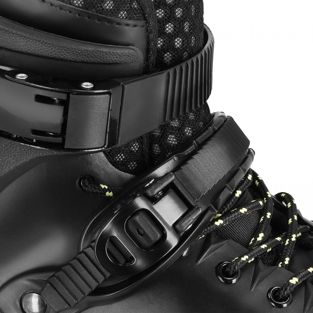 • potrójne zapięcie na dwie klamry i sznurowadła.Pozwala to na optymalne dopasowanie buta do stopy oraz zapewnia bezpieczeństwo przy szybkiej jeździe slalomowej, miejskiej i freeskatowej!
