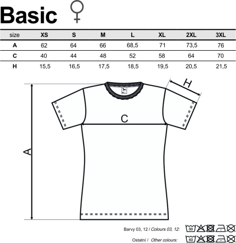 T-Shirt damski z krótkim rękawem to doskonała propozycja dla kobiet. Bez bocznych szwów, zapewniający wygodę i komfort noszenia. Dodatkowo posiada podwójne szwy na ramionach, co zwiększa jego trwałość. Wzmocniony lycrą ściągacz oraz taśma wzmacniająca gwarantują, że ubranie będzie służyć przez długi czas. Wykonany z 100% bawełny, stabilizowanej dla lepszego kształtu. Gramatura wynosi 160g, co sprawia, że koszulka jest lekka i przyjemna w noszeniu. Idealna propozycja dla aktywnych kobiet !