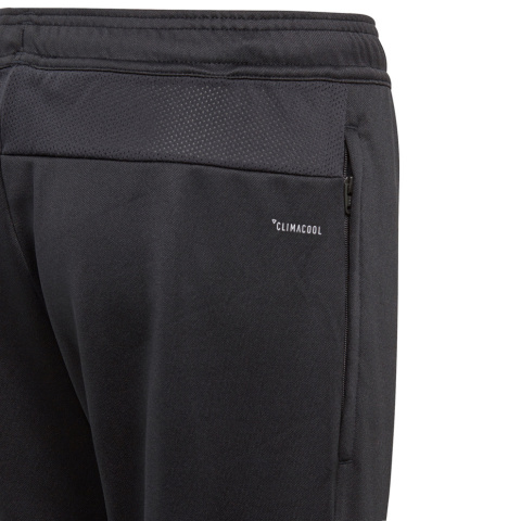 Spodnie treningowe dla dzieci Regista 18 od firmy adidas. Model przeznaczony jest do użytku codziennego, podczas treningu w chłodne dni. Model wykonany został z wysokiej jakości poliestru, z technologią CLIMACOOL®, która zapewnia kontrolę ciepła i wilgoci poprzez wentylację. O idealne dopasowanie dba sznurek do ściągania w talii. Nogawki wyposażone w zamek ułatwiają zakładanie oraz zdejmowanie. Spodnie posiadają dwie kieszenie boczne na drobiazgi.