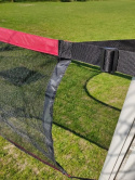 • Mocowanie: Do każdego ze słupków bramki plandeka mocowana jest za pomocą dwóch pasków z plastikowymi klamrami, natomiast do poprzeczki używa się czterech pasków z rzepem. Dzięki temu plandeka jest łatwa w instalacji i stabilna podczas użytkowania.
